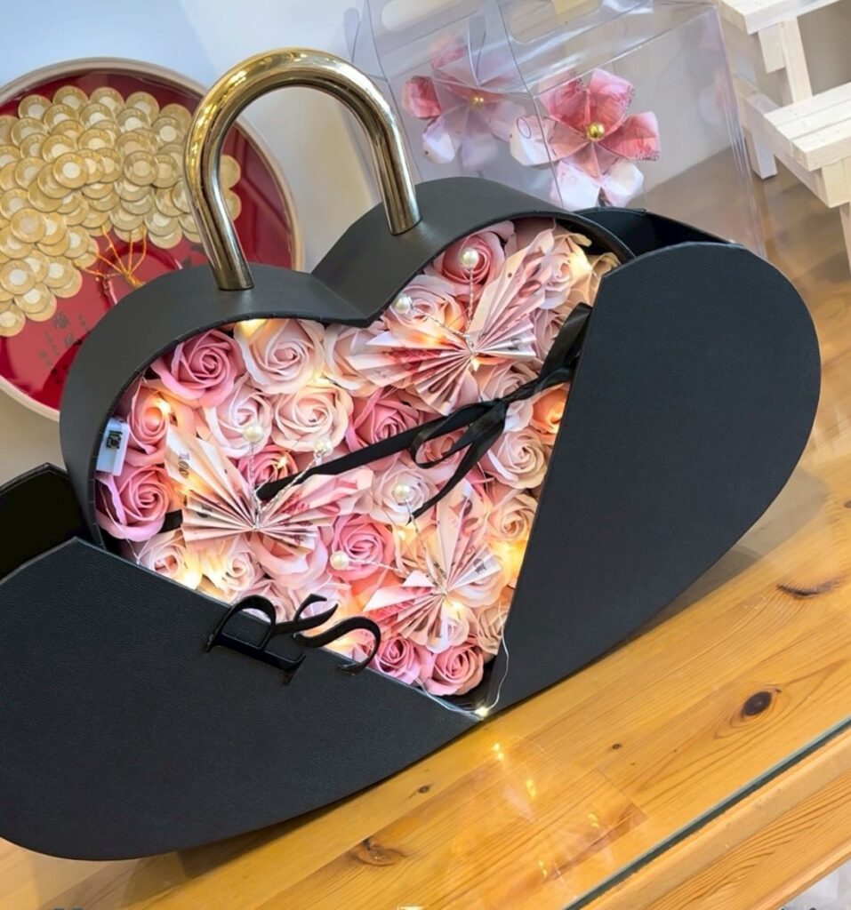 首頁 情人節、生日禮物系列 愛心玫瑰花盒 愛心玫瑰花盒NT$2,800 價格已經包含裡面真鈔金額600元 愛心玫瑰花盒 數量 加入購物車 分類: 情人節、生日禮物系列 描述 售價:2800 含運 價格已經包含裡面真鈔金額600元 有附提袋 相關商品 方型小愛心花盒 NT$6,000 價格已經包含裡面真鈔金額3600元 加入購物車 立體愛心花盒 NT$6,280 價格已經包含裡面真鈔金額3600元 加入購物車 方型小愛心花盒 NT$4,080 價格已經包含裡面真鈔金額2000元 加入購物車 草莓糖葫蘆 NT$2,800 價格已經包含裡面真鈔600元 加入購物車